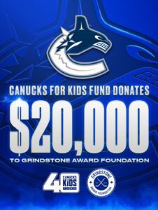 Canucks for Kids Fund donated another $20,000 to Grindstone, for a total of $100,000 over 5 years.